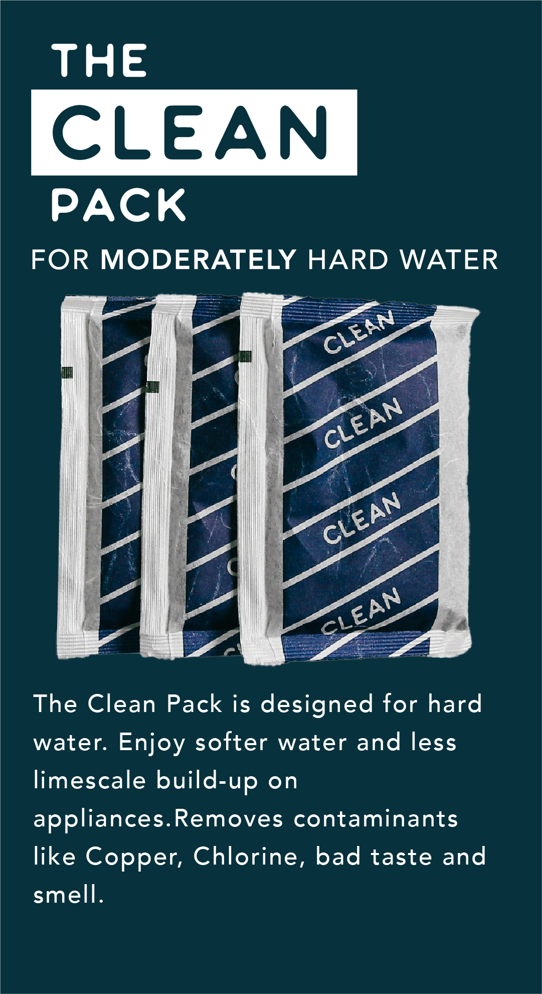 The Clean Pack is designed for hard water. Enjoy softer water and less limescale build-up on appliances. Removes Lead, Copper and Chlorine.