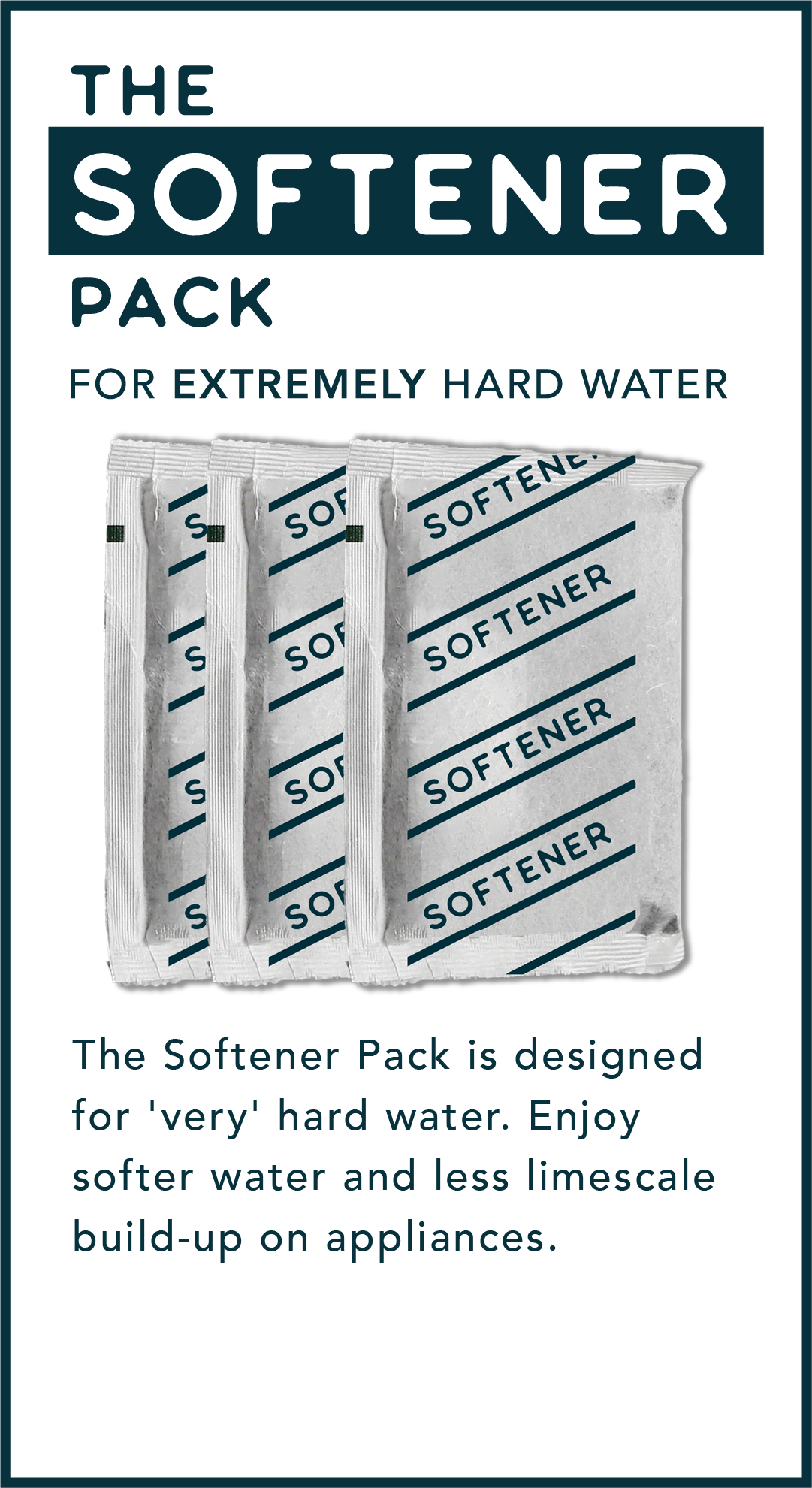 The Softener Pack is designed for 'very' hard water. Enjoy softer water and less limescale build-up on appliances. Removes common UK tap water contaminants.